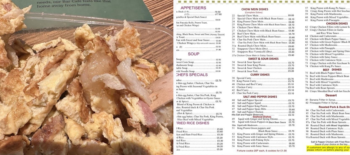 Don't be put off my negative reviews. I've been ordering food from ere past 5 years. Never had a bad meal from ere. Quick delivery always piping hot and very tasty. Definitely in my top 5 Chinese takeaways.